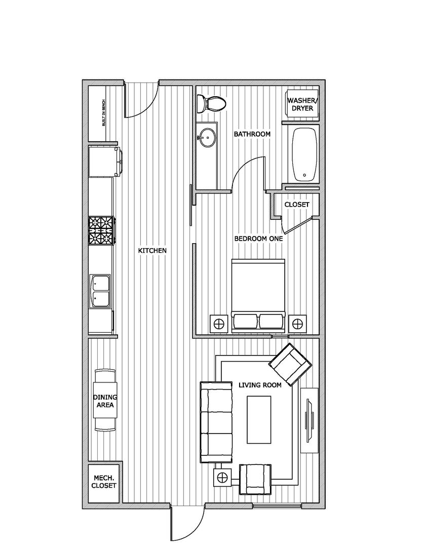 Briar Grove offers luxurious 1 bedroom apartments with open kitchen, large living room, and beautiful finishes. The N1 Floor Plan is identical to the N, except that the living room is 40 square feet smaller.